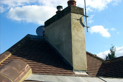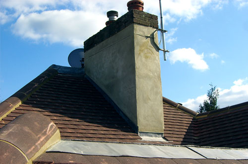 Marley Heritage plain tiles. Chimney stack has been hacked off and re-rendered in sand and cement. 3 layer high performance flat roof – 18 Year Guarantee.