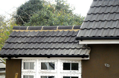 Redland interlocking tiles fitted to main roof. Velux roof window fitted. Redland dry fix ventilated ridge fitted.