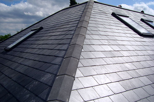 Natural 20/10 Cupra slates fitted to main roof. Velux conservation roof windows fitted.